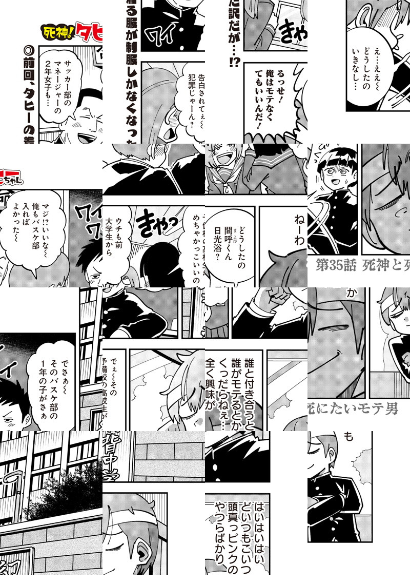 常に自信満々の死神「タヒー」は、今日も人間界に舞い降りて命を刈る!! しかし現代を生きる人間たちは、どいつもこいつもクセのある「死にたがり」ばかりで……!? 心の闇に死神がしのび込む、現代ダークファンタジー・ギャグ!