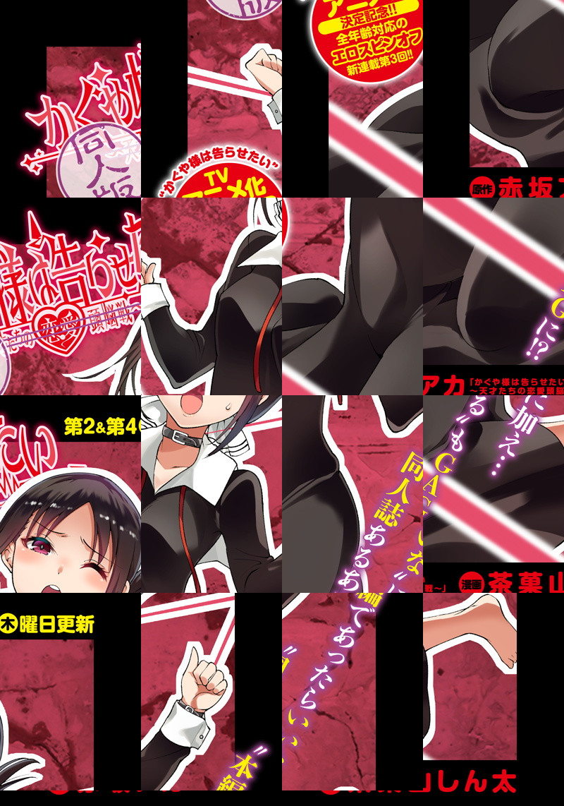 TVアニメ化が発表された「かぐや様は告らせたい〜天才たちの恋愛頭脳戦〜」。 “エロ”完全NGを貫く本編であったら良いなと思う“エロスピンオフ”始動!! ※全年齢対応なのでご安心ください!