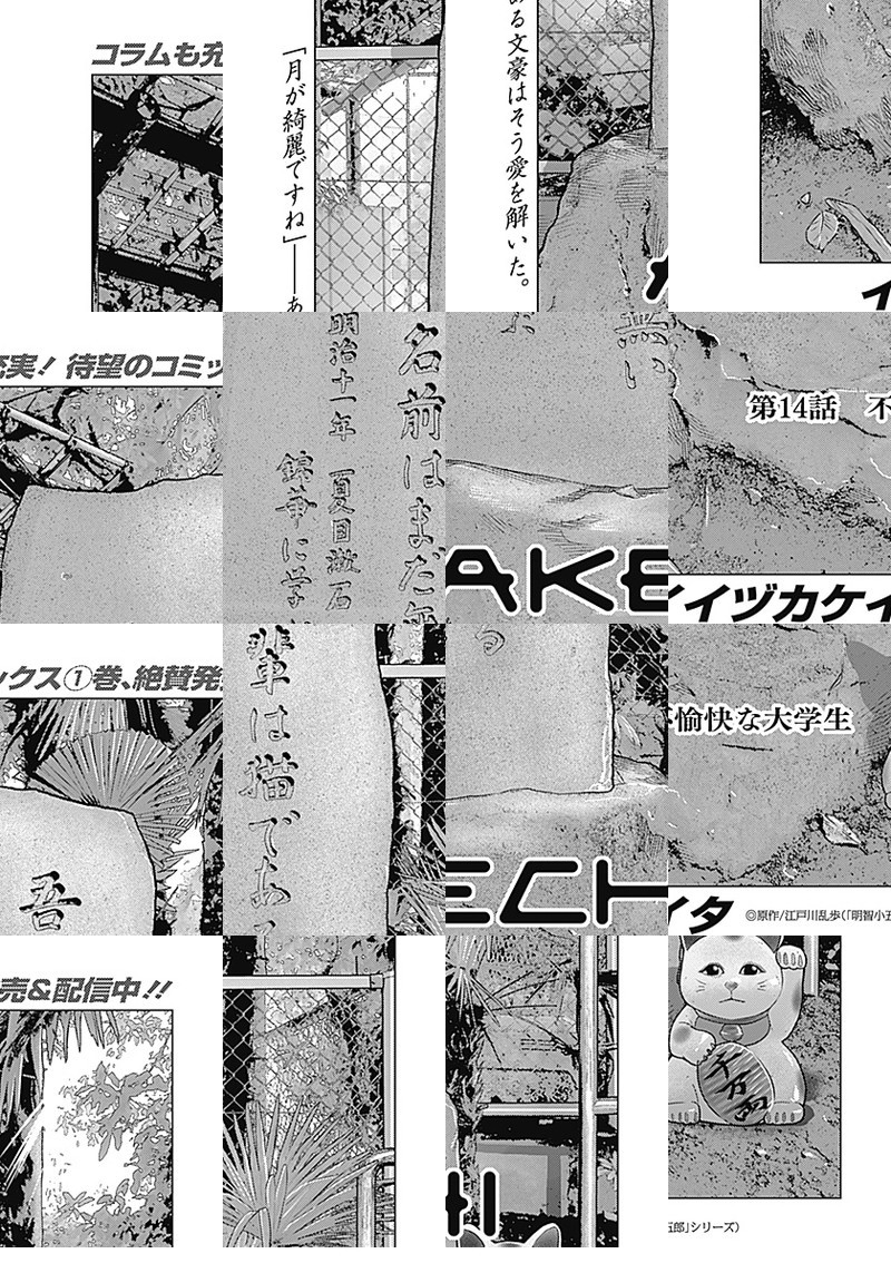 「GANTZ:G」のイイヅカケイタ、週刊初連載!“現代版・アケチコゴロウ事件簿”が巻頭カラーで新連載開始!! 舞台は現代、有象無象の事件が混在する街・東京。古書店を営む明智小五郎(25)と、その幼馴染で刑事の波越英一郎が本の街・神保町で謎に挑む…!国民が知る“かの名探偵”、新解釈でいま蘇る!!