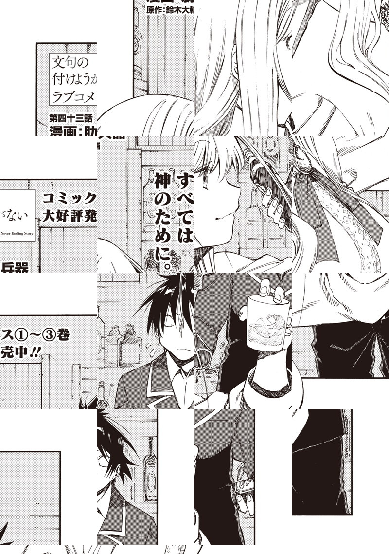 “千年を生きる神”神鳴沢セカイは、銀髪赤眼の美少女。世間知らずで尊大で、見た目は幼いのに酒と葉巻をたしなみ、一日中お屋敷で本を読んで過ごしている。 彼女の”生贄”として捧げられた高校生・桐島ユウキ。『生贄になる代わりに何でも言うことを聞いてやろう』と言われた彼はこう願い出た――「神鳴沢セカイさん。俺と結婚してください」。 そして始まるふたりの生活だが――穏やかで他愛のない日々は、やがて世界が抱える恐るべき秘密によって狂い始めていく。 どこまでも純粋な二人の愛の喜劇《ラブコメディ》。決して果てることのない物語がここに始まる! ライトノベル『文句の付けようがないラブコメ』の超速コミカライズ開幕!!