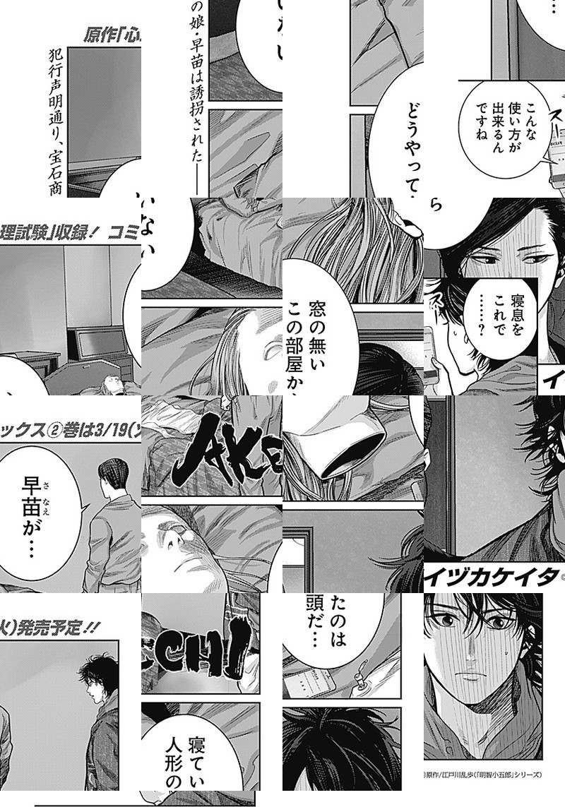 「GANTZ:G」のイイヅカケイタ、週刊初連載!“現代版・アケチコゴロウ事件簿”が巻頭カラーで新連載開始!! 舞台は現代、有象無象の事件が混在する街・東京。古書店を営む明智小五郎(25)と、その幼馴染で刑事の波越英一郎が本の街・神保町で謎に挑む…!国民が知る“かの名探偵”、新解釈でいま蘇る!!
