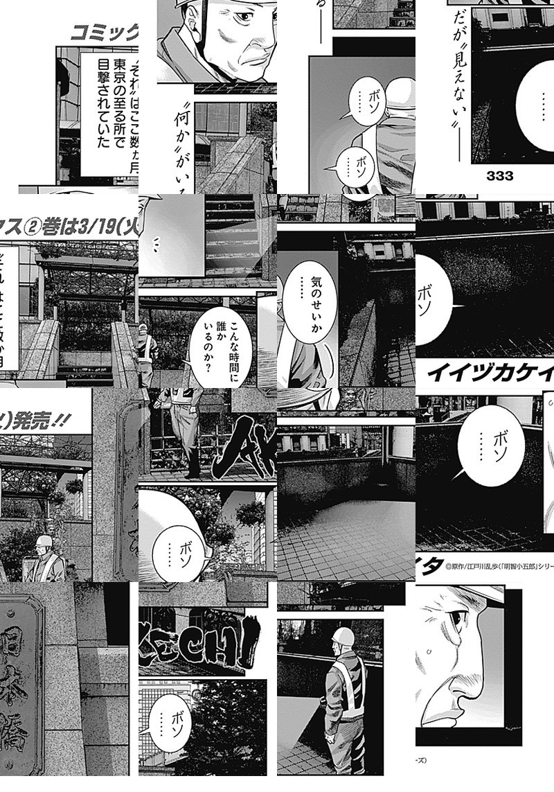 「GANTZ:G」のイイヅカケイタ、週刊初連載!“現代版・アケチコゴロウ事件簿”が巻頭カラーで新連載開始!! 舞台は現代、有象無象の事件が混在する街・東京。古書店を営む明智小五郎(25)と、その幼馴染で刑事の波越英一郎が本の街・神保町で謎に挑む…!国民が知る“かの名探偵”、新解釈でいま蘇る!!