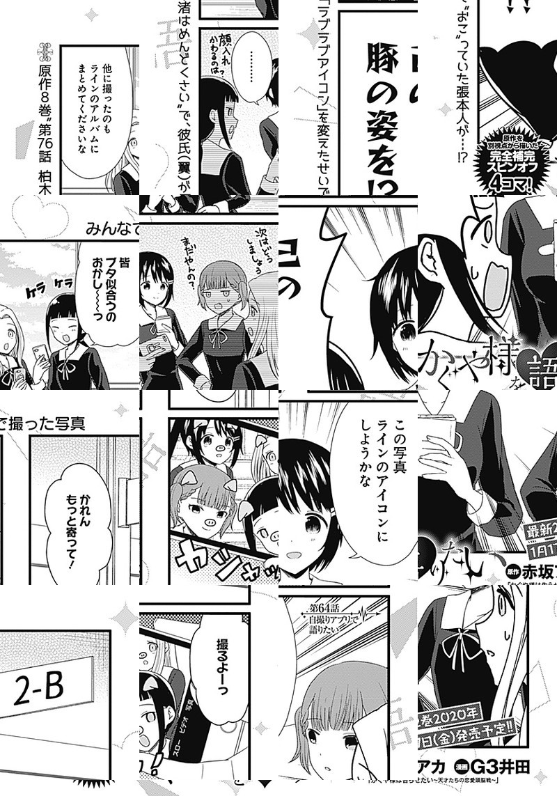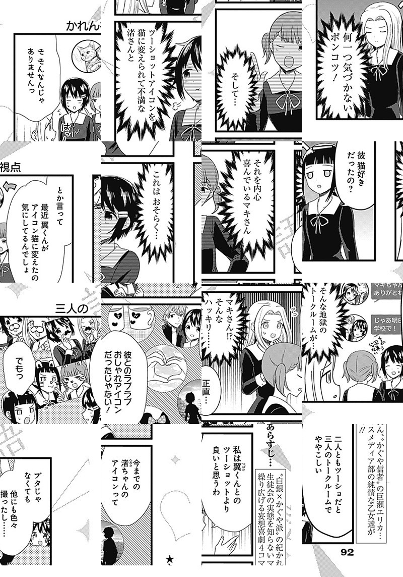 『かぐや様は告らせたい〜天才たちの恋愛頭脳戦〜』TVアニメ化記念、週刊ヤングジャンプ本誌でもスピンオフ作品が連載開始しました。 生徒会の実態を知らない、マスメディア部のメンバーが繰り広げる妄想喜劇4コマ!!