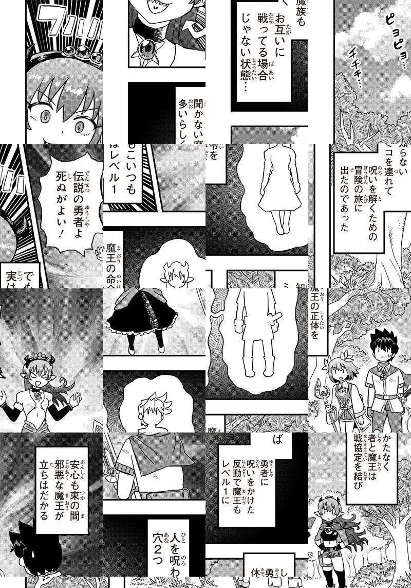 呪いを受けてレベル1になった勇者と魔王。世界平和と世界征服、それぞれの望みを果たすべく 最弱にして最強の二人が手を組んだ。呪いを解くための冒険が今、ここに始まる――!
