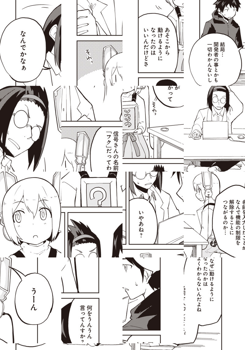 どこにでもある寂れた商店街の一角にある電気屋に住む相永工一は、近くの横断歩道に不思議な格好をした少女に気がつく。彼女は24時間休まずに横断者や車の交通整理をしているらしい…。不信&不思議に思った相永が同じ商店街に住むナミナとともに話しかけると、自分のことを「ロボット」だと言って…!?
