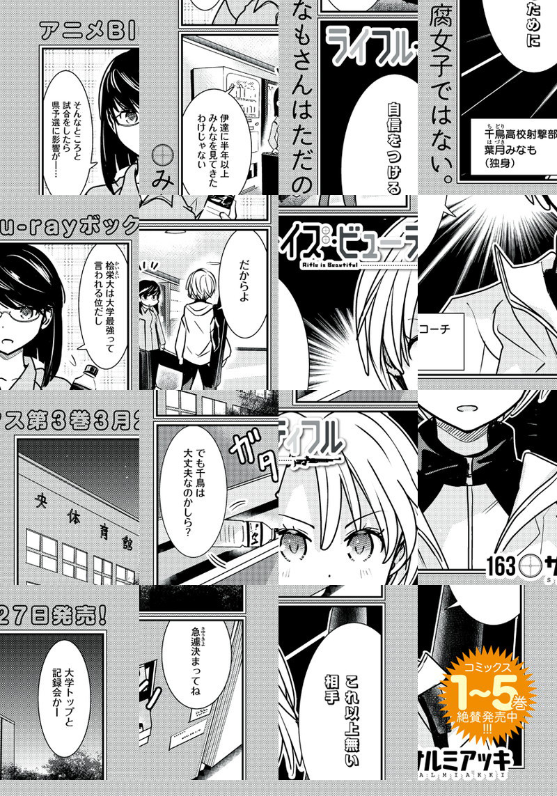 私たち、撃ちます――。 運動神経がいらない? 東京五輪も目指せる? そんなライフル射撃の世界をそこはかとなく描く、サルミアッキ先生の描く千鳥高校射撃部4コマ。