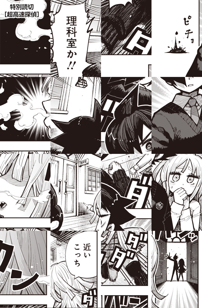 殺人事件の匂いに誘われて現場に直行、高校男女! 彼の名は超高速探偵ッ!!その異名の理由とは!?