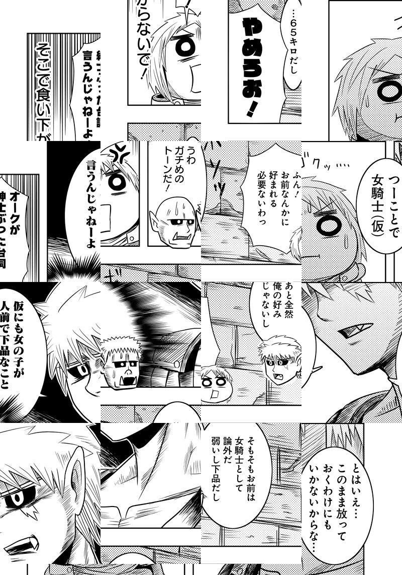 「くっ!殺せ!」オークに囚われてしまった誇り高き女騎士。 辱めを選ぶより死を…のはずだったが、そのあまりに不摂生な肉体に 呆れたオークはそのぐうたらな性根と身体を叩き直すことを決意。 運動不足な現代人に贈る、新感覚ダイエットファンタジー!