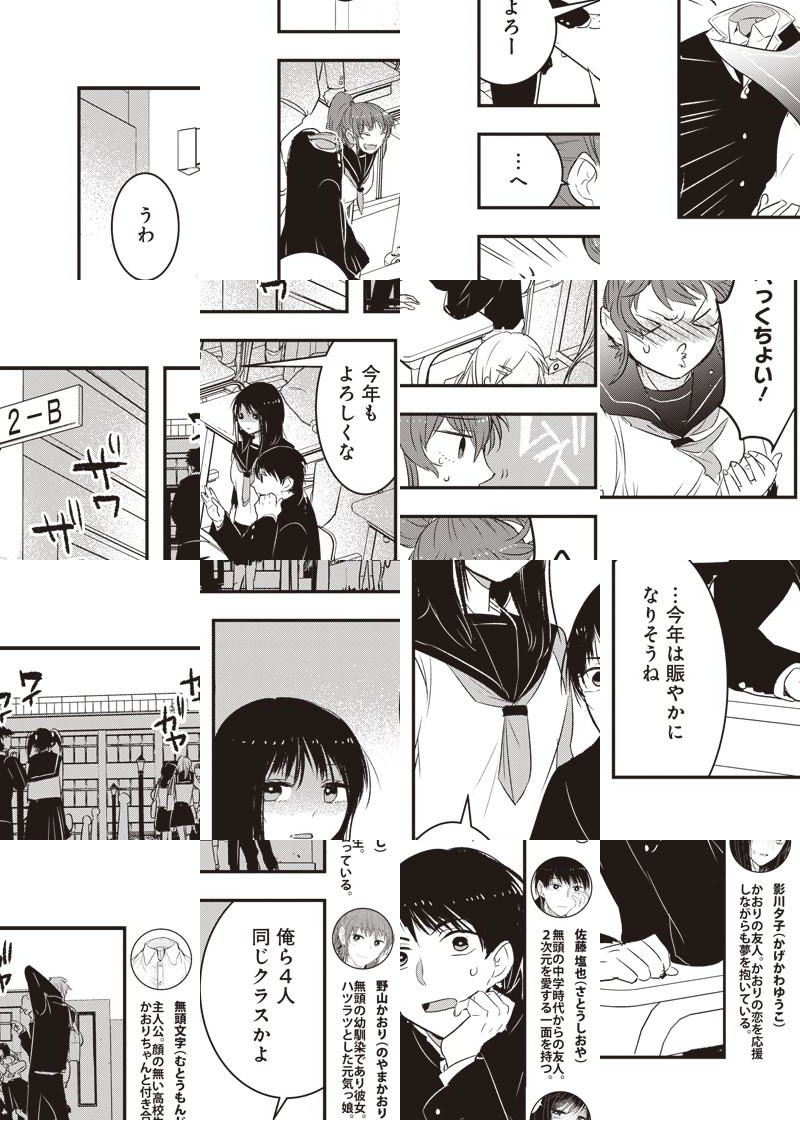 生まれた時から“顔が無い”高校生の無頭(むとう)くん。 そんな彼が恋をしたのは、幼馴染の女の子・かおりちゃん。 見えない表情、見えない視線、それでも2人は通じ合う♥ 男の魅力は顔じゃない!! “冗談は顔だけな”異色カップルの真剣交際スタートです♪