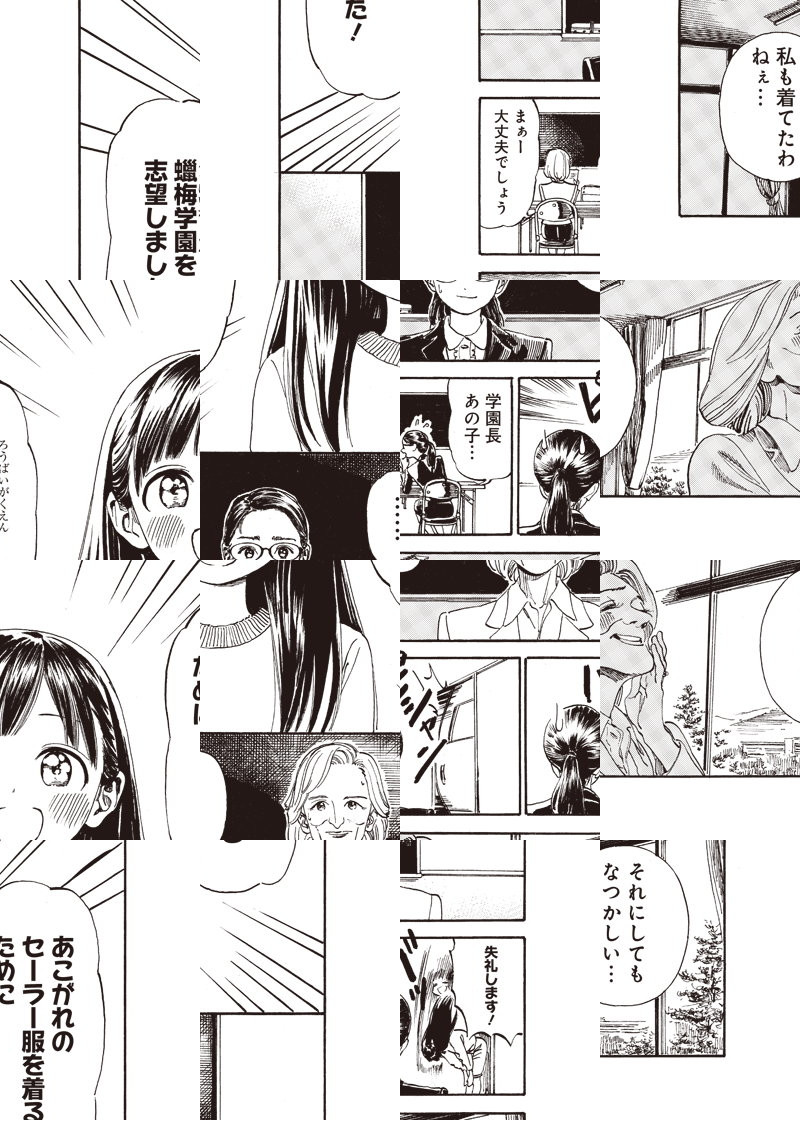舞台は、田舎の名門女子中学・私立蠟梅学園(わたくしりつろうばいがくえん)。 この学園のセーラー服を着ることが「夢」だった明日小路(あけびこみち)。 少女の「夢」の中学生ライフがついに始まる♪ 広がる、緑豊かな田園風景。ゆっくり流れる青春時間。 田舎×中学生×セーラー服「友達100人出来るかな?」 俊英・博が、柔らかなタッチで贈る優しい学園物語…入学です♪♪