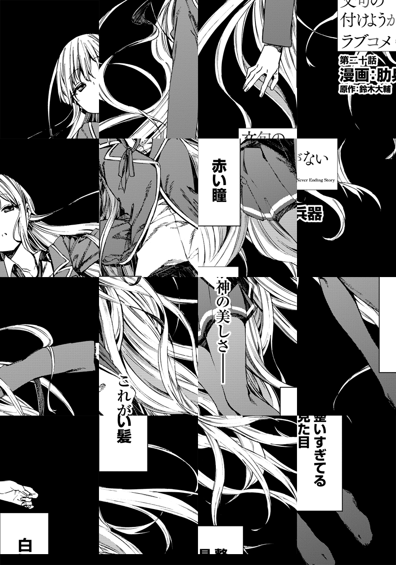 “千年を生きる神”神鳴沢セカイは、銀髪赤眼の美少女。世間知らずで尊大で、見た目は幼いのに酒と葉巻をたしなみ、一日中お屋敷で本を読んで過ごしている。 彼女の”生贄”として捧げられた高校生・桐島ユウキ。『生贄になる代わりに何でも言うことを聞いてやろう』と言われた彼はこう願い出た――「神鳴沢セカイさん。俺と結婚してください」。 そして始まるふたりの生活だが――穏やかで他愛のない日々は、やがて世界が抱える恐るべき秘密によって狂い始めていく。 どこまでも純粋な二人の愛の喜劇《ラブコメディ》。決して果てることのない物語がここに始まる! ライトノベル『文句の付けようがないラブコメ』の超速コミカライズ開幕!!