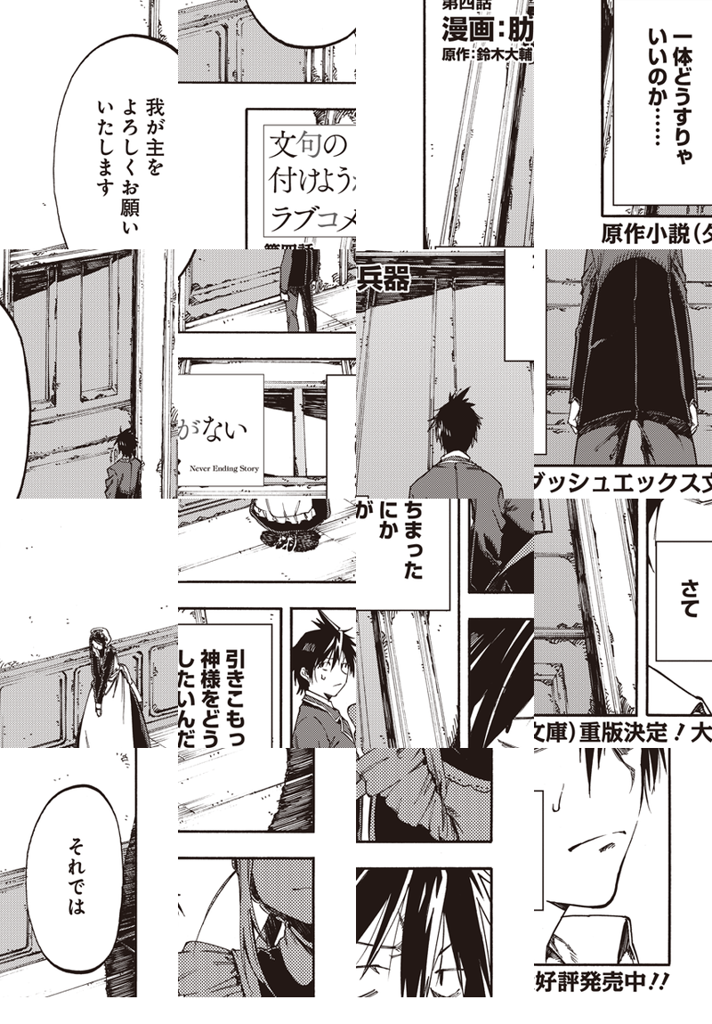 “千年を生きる神”神鳴沢セカイは、銀髪赤眼の美少女。世間知らずで尊大で、見た目は幼いのに酒と葉巻をたしなみ、一日中お屋敷で本を読んで過ごしている。 彼女の”生贄”として捧げられた高校生・桐島ユウキ。『生贄になる代わりに何でも言うことを聞いてやろう』と言われた彼はこう願い出た――「神鳴沢セカイさん。俺と結婚してください」。 そして始まるふたりの生活だが――穏やかで他愛のない日々は、やがて世界が抱える恐るべき秘密によって狂い始めていく。 どこまでも純粋な二人の愛の喜劇《ラブコメディ》。決して果てることのない物語がここに始まる! ライトノベル『文句の付けようがないラブコメ』の超速コミカライズ開幕!!