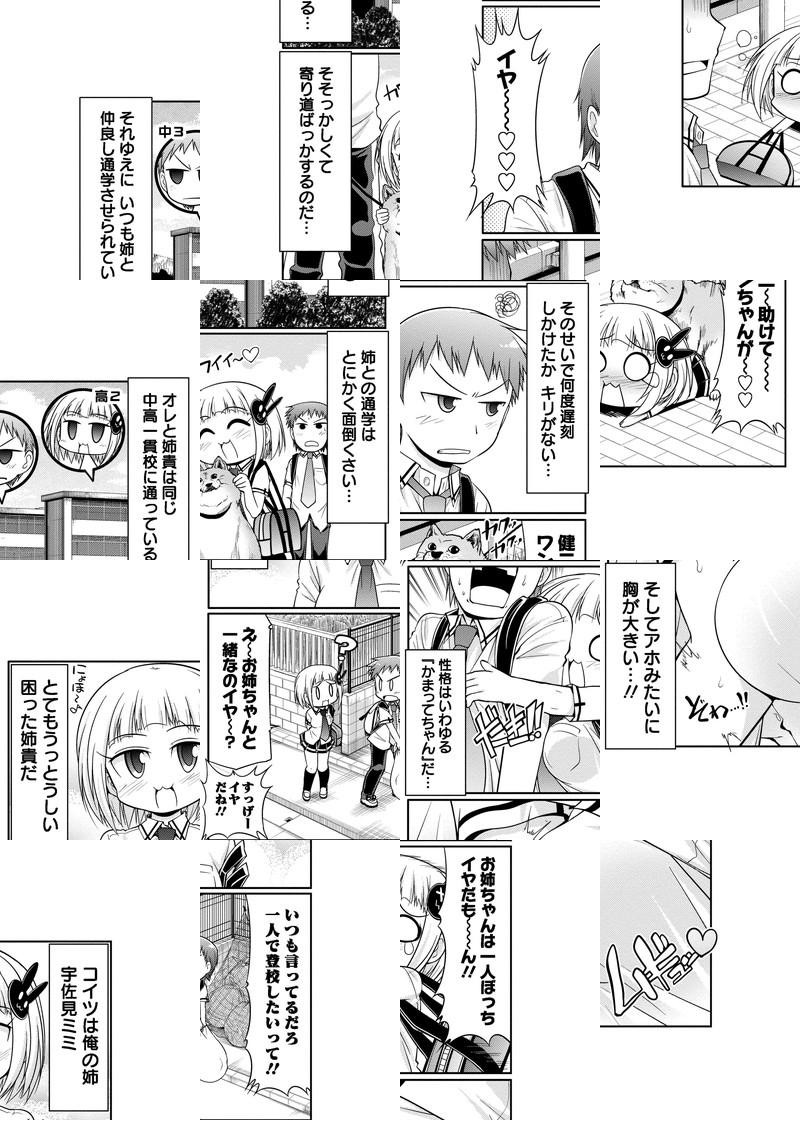 弟にとって、姉はウザいもの……。それが巨乳だろうがカワイかろうが! 巨乳でウルさくって、かまってちゃんのお姉ちゃん・宇佐見ミミと、 一緒に暮らす弟・健二による、ウザかわ☆お姉ちゃんハプニングコメディ♥