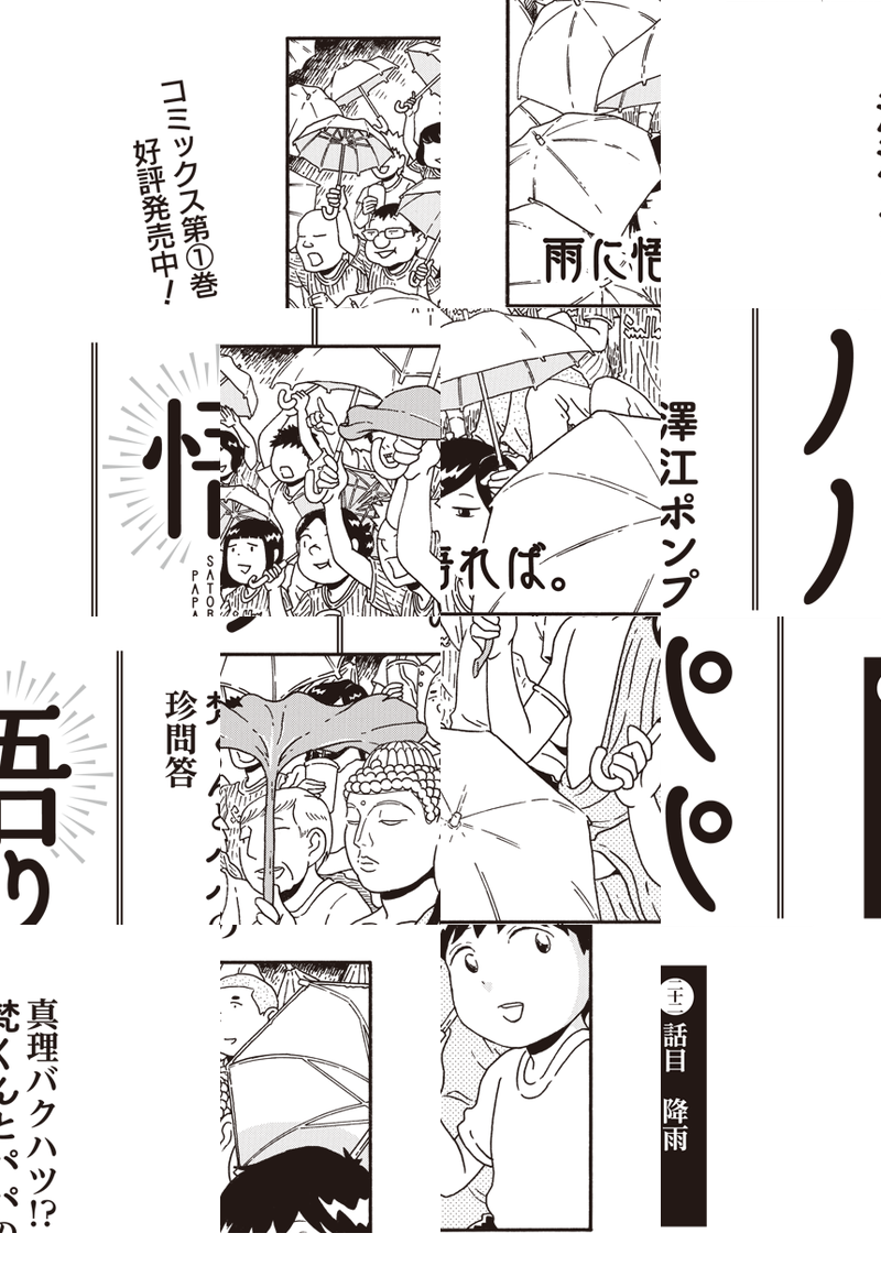 脱サラして「悟り」を開いたパパ。 仏の教えを説きながら主夫業に勤しむパパのことを (ちょっと変だなと思いつつ)慕う小学生の息子、梵くん。 そして、二人を(ほどよく)見守る会社勤めのママ。 この物語はそんな一家を描いた珍妙なフィクションです。 ★描き下ろし特別編&おまけ漫画も収録! 「悟りパパ」コミックス第1巻発売中!