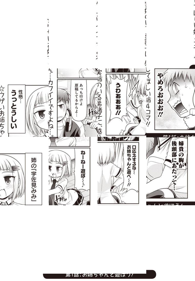 弟にとって、姉はウザいもの……。それが巨乳だろうがカワイかろうが! 巨乳でウルさくって、かまってちゃんのお姉ちゃん・宇佐見ミミと、 一緒に暮らす弟・健二による、ウザかわ☆お姉ちゃんハプニングコメディ♥