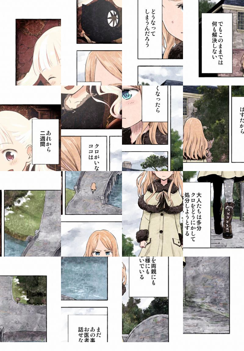 真っ黒な猫『クロ』と少女『ココ』。大きなお屋敷にふたりだけで暮らす毎日は、可愛くて楽しくて、どこか不気味でーー!? 紙袋にはまったり、スズメにじゃれたり、元気でやんちゃなクロと、そんなクロが大好きなココ。ふたりはいつも仲良しだけど、ココが気づかない、クロの一面がありーー? 謎が謎呼ぶ、フルカラーコミック!