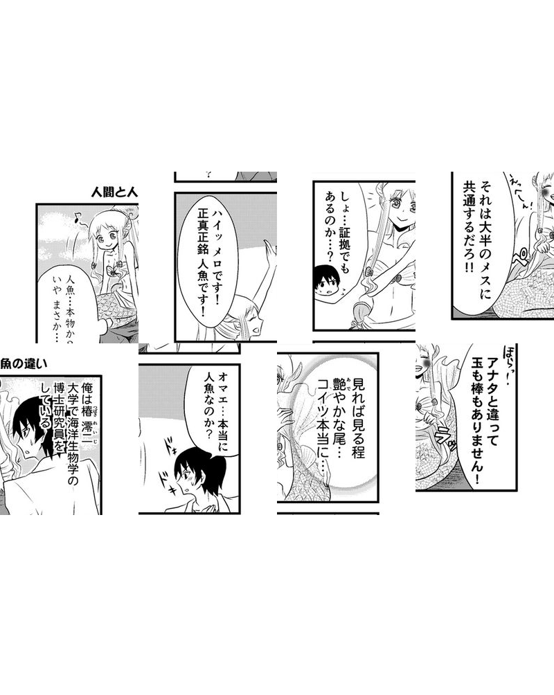 地上には艶かしい“BL”の世界が広がる… なんて期待して海底からやってきた腐女子な人魚のメロと!! 1組の“攻め”と“受け”が織り成す4コマGAG!! 腐女子×BL×人魚=f(腐)人魚!!