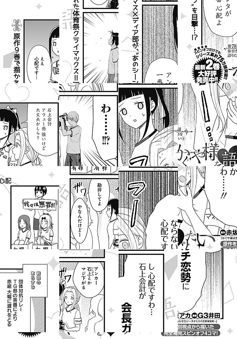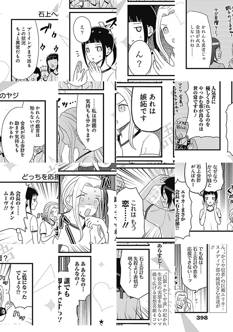 『かぐや様は告らせたい〜天才たちの恋愛頭脳戦〜』TVアニメ化記念、週刊ヤングジャンプ本誌でもスピンオフ作品が連載開始しました。 生徒会の実態を知らない、マスメディア部のメンバーが繰り広げる妄想喜劇4コマ!!