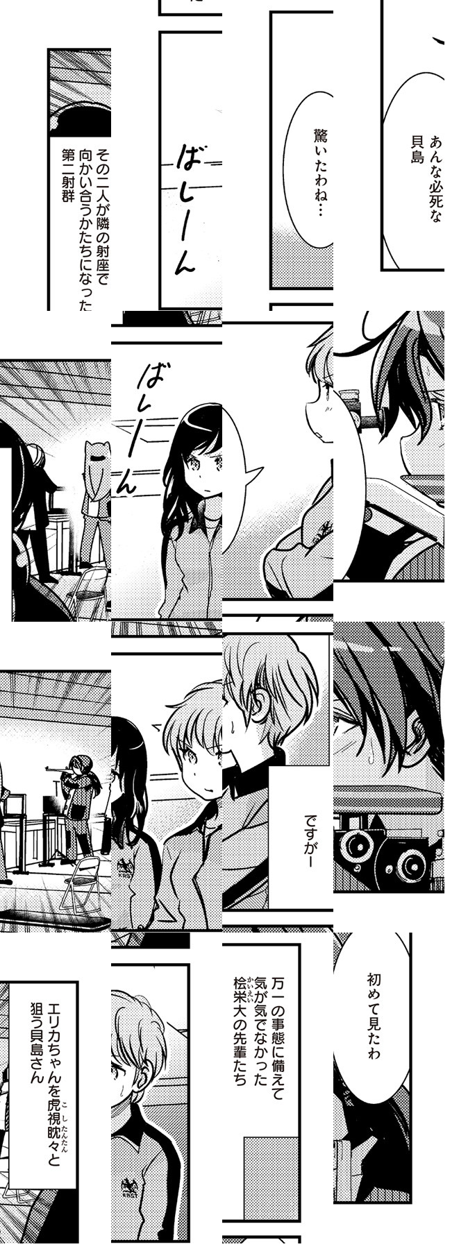 私たち、撃ちます――。 運動神経がいらない? 東京五輪も目指せる? そんなライフル射撃の世界をそこはかとなく描く、サルミアッキ先生の描く千鳥高校射撃部4コマ。