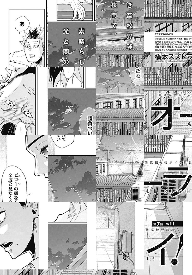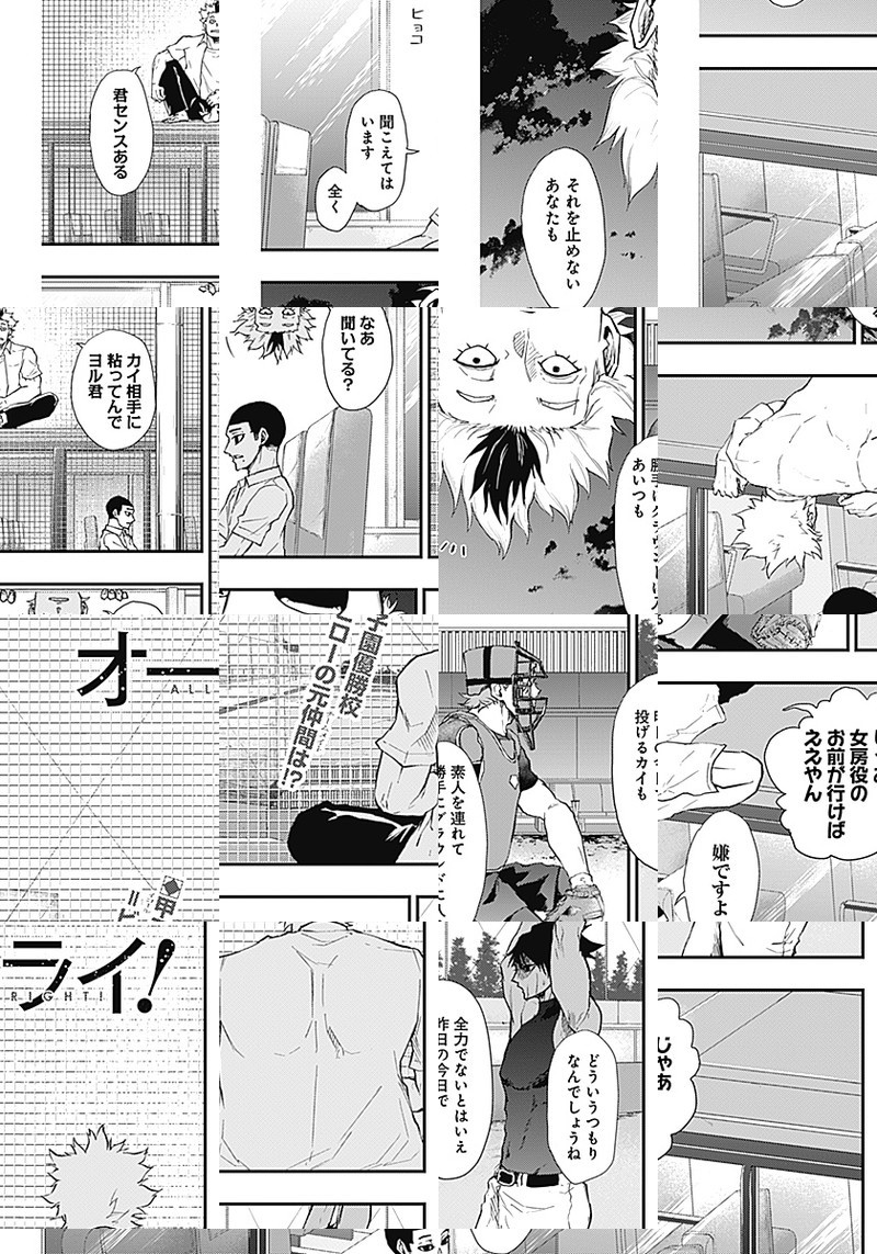 汗を流す姿を「無駄」と切り捨てる高校生・守崎夜畔(モリサキヨハン)。 ある日駅でキーホルダーを拾ったのをキッカケに薙居尾朗(カルイビロー)に「魔物退治」に誘われ…。 野球界に新たな価値観を提示する高校野球譚、ここに始動!