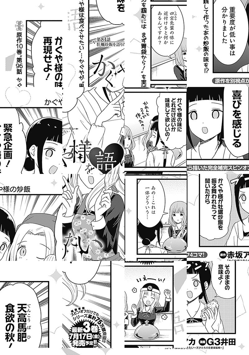 『かぐや様は告らせたい〜天才たちの恋愛頭脳戦〜』TVアニメ化記念、週刊ヤングジャンプ本誌でもスピンオフ作品が連載開始しました。 生徒会の実態を知らない、マスメディア部のメンバーが繰り広げる妄想喜劇4コマ!!