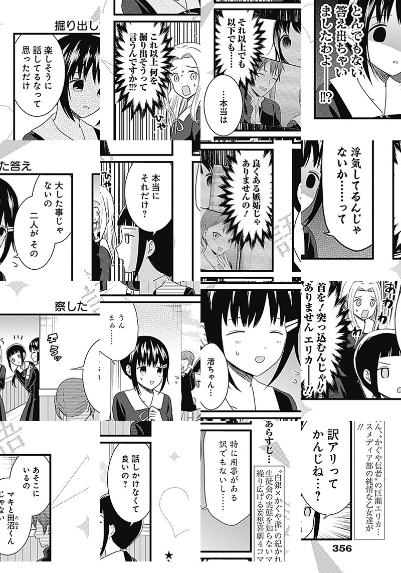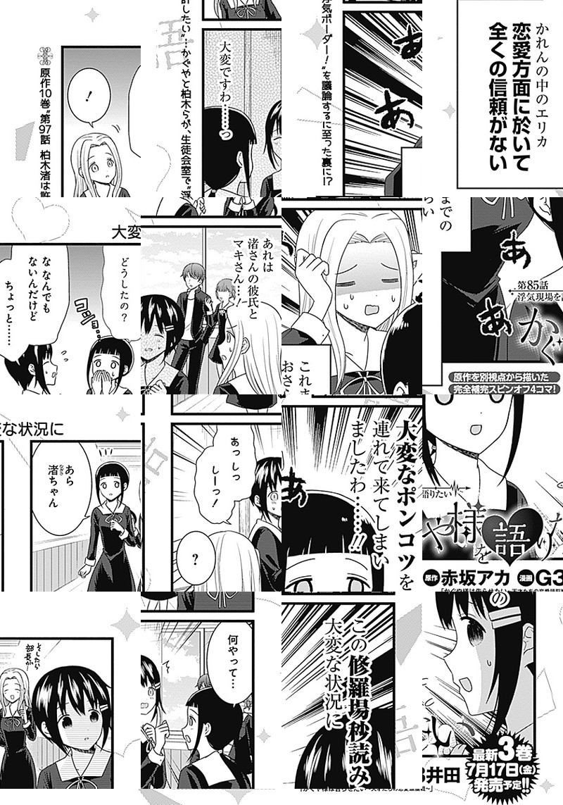 『かぐや様は告らせたい〜天才たちの恋愛頭脳戦〜』TVアニメ化記念、週刊ヤングジャンプ本誌でもスピンオフ作品が連載開始しました。 生徒会の実態を知らない、マスメディア部のメンバーが繰り広げる妄想喜劇4コマ!!