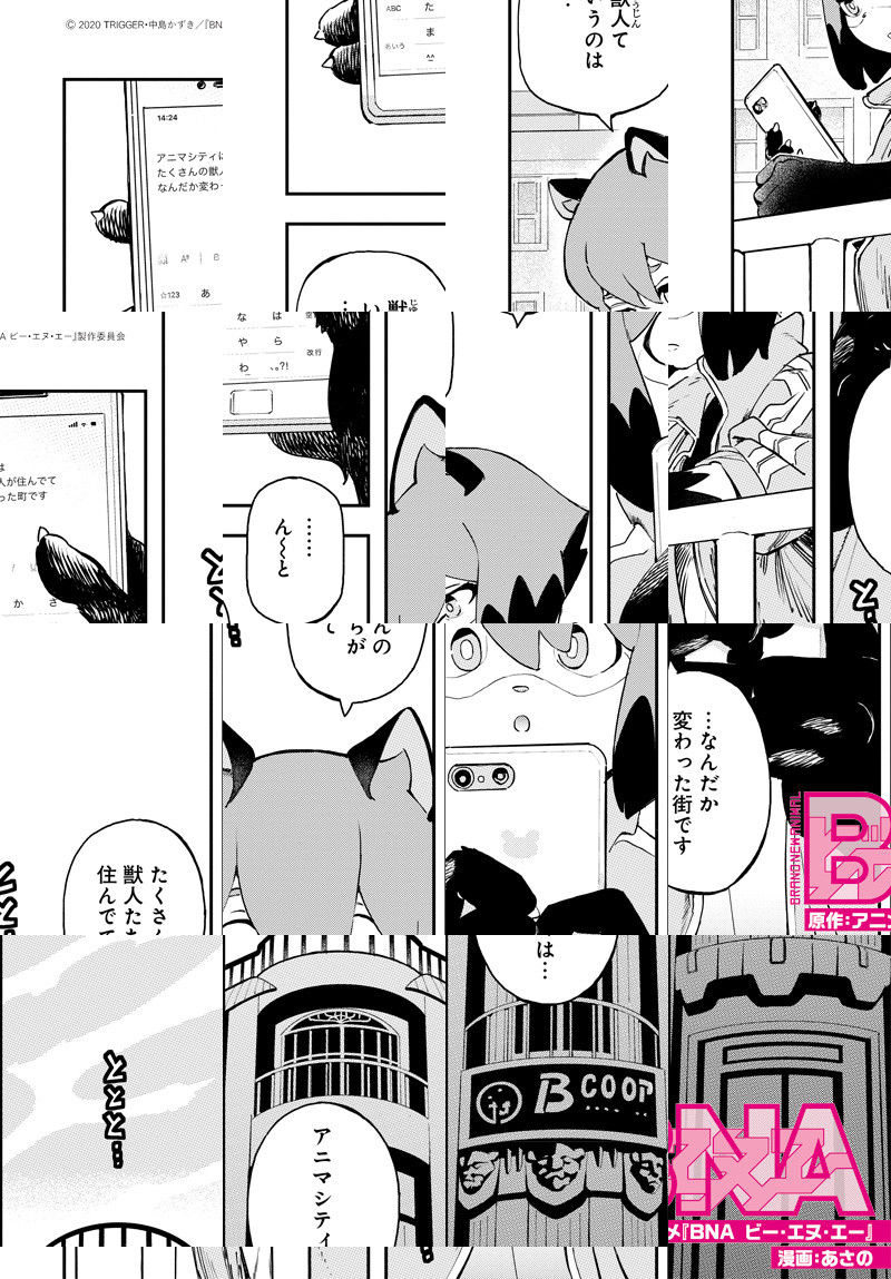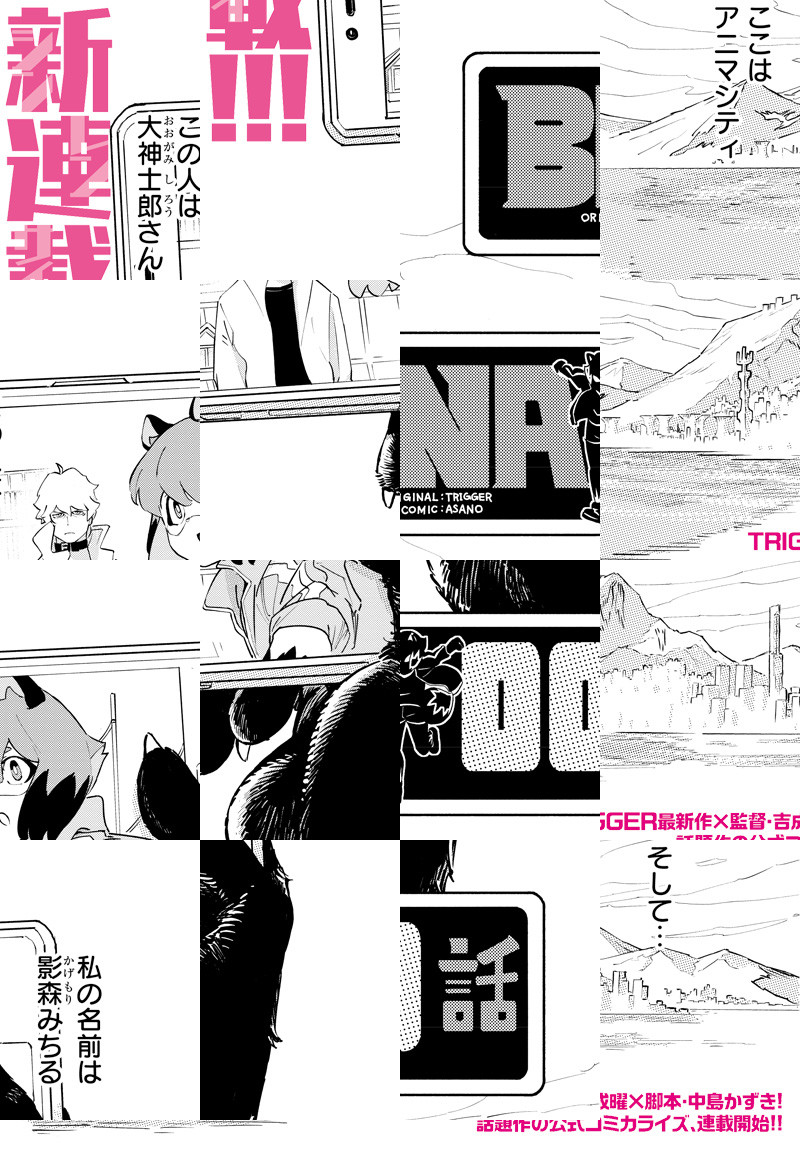 “人類”と“獣人”が共存する社会。人間の女子高生だった影森みちるは、ある日突然タヌキ獣人になってしまう。人間に戻る方法を探しに、獣人たちが暮らす街「アニマシティ」へとやって来たみちるは――?TRIGGER最新作×監督・吉成曜×脚本・中島かずきの話題作、公式コミカライズ!