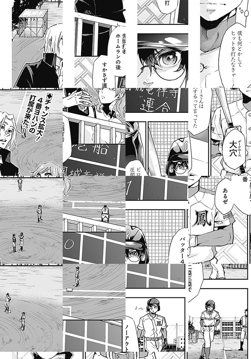 汗を流す姿を「無駄」と切り捨てる高校生・守崎夜畔(モリサキヨハン)。 ある日駅でキーホルダーを拾ったのをキッカケに薙居尾朗(カルイビロー)に「魔物退治」に誘われ…。 野球界に新たな価値観を提示する高校野球譚、ここに始動!