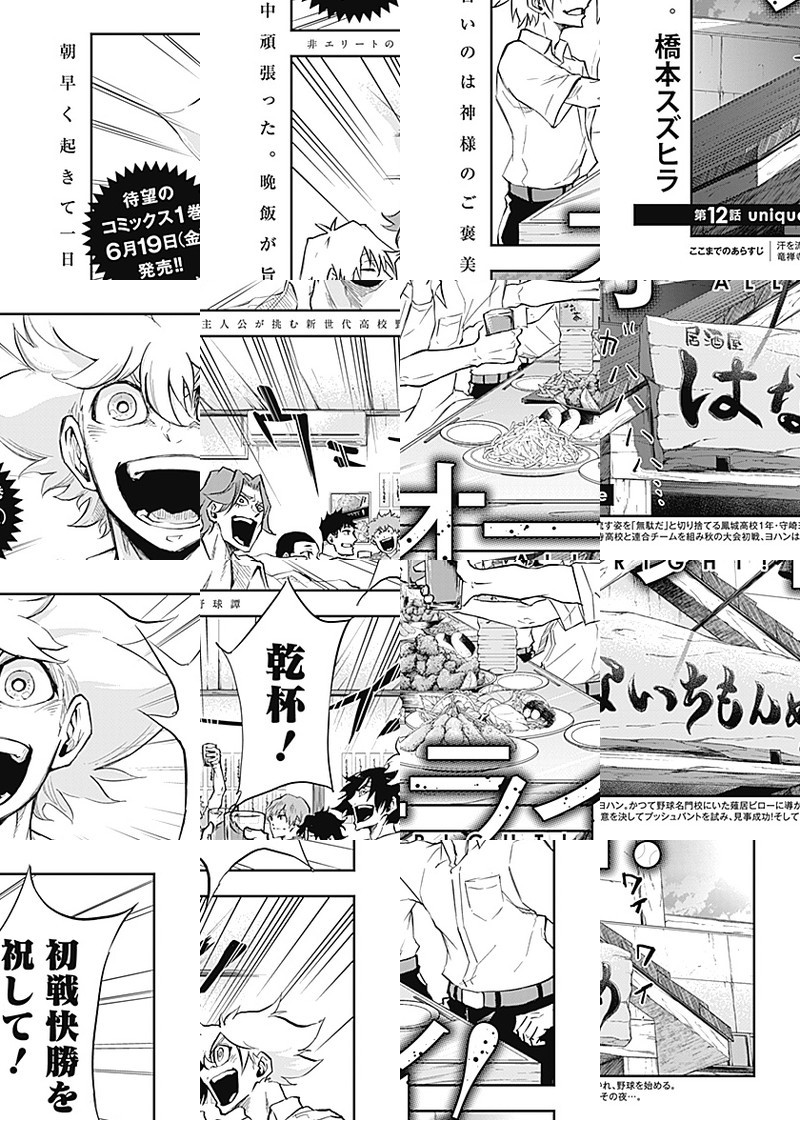 汗を流す姿を「無駄」と切り捨てる高校生・守崎夜畔(モリサキヨハン)。 ある日駅でキーホルダーを拾ったのをキッカケに薙居尾朗(カルイビロー)に「魔物退治」に誘われ…。 野球界に新たな価値観を提示する高校野球譚、ここに始動!