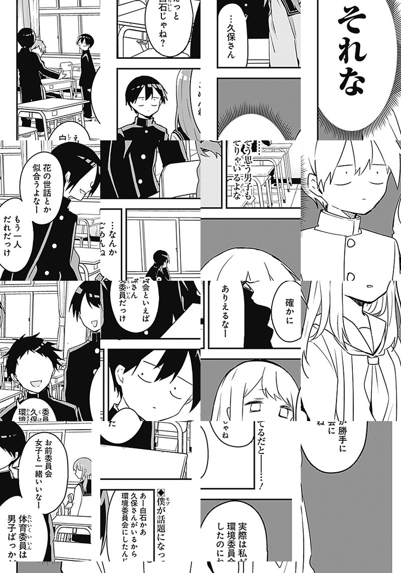 高校1年生・白石純太は、隣に居ても気づかれない、集合写真に写っているのに欠席だと思われて顔写真を合成される、そんな存在感ゼロの"モブ"男子。 ところがクラスメートの"ヒロイン級"美少女・久保さんだけは彼を目ざとく見つけて、今日もちょっかいをかけにやってくる。 誰だって、誰かの特別になれる。でも、その感情に"恋"と名がつくには、まだ二人は少しだけ幼い。 "ラブコメディ"の2歩手前。ヒロイン女子×モブ男子の思春期スイートコメディ。