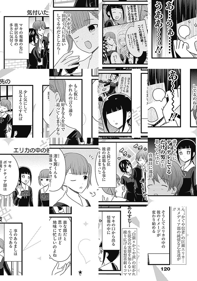 『かぐや様は告らせたい〜天才たちの恋愛頭脳戦〜』TVアニメ化記念、週刊ヤングジャンプ本誌でもスピンオフ作品が連載開始しました。 生徒会の実態を知らない、マスメディア部のメンバーが繰り広げる妄想喜劇4コマ!!