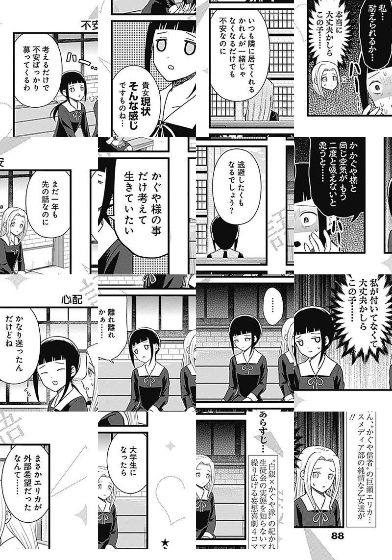 『かぐや様は告らせたい〜天才たちの恋愛頭脳戦〜』TVアニメ化記念、週刊ヤングジャンプ本誌でもスピンオフ作品が連載開始しました。 生徒会の実態を知らない、マスメディア部のメンバーが繰り広げる妄想喜劇4コマ!!