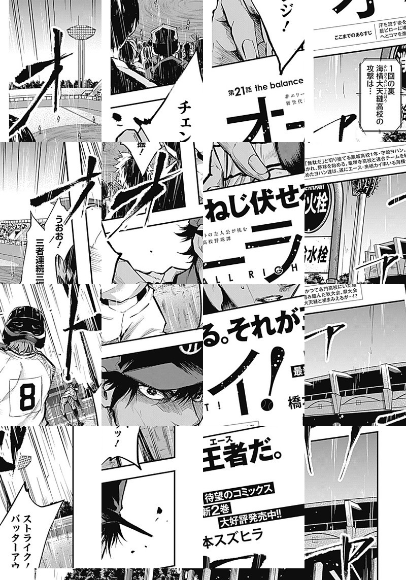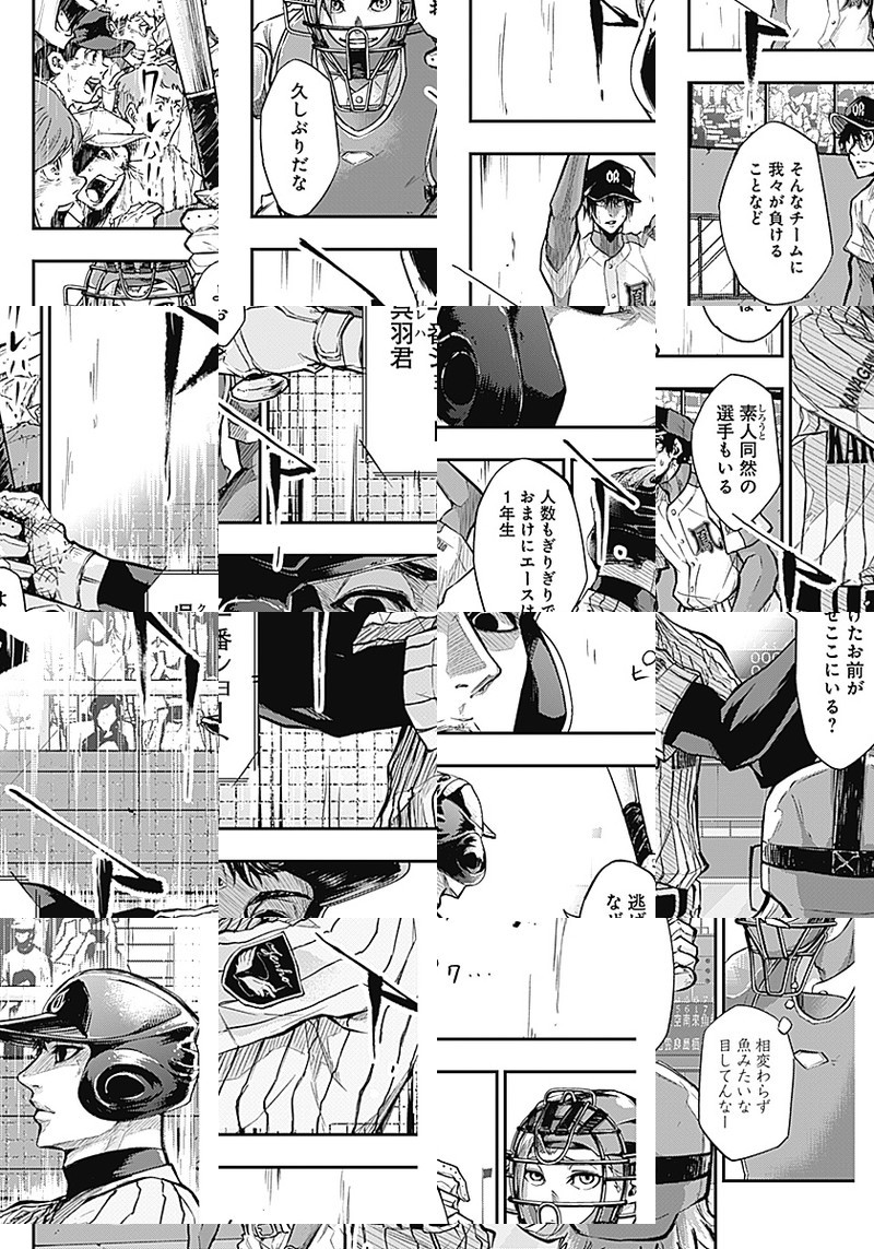 汗を流す姿を「無駄」と切り捨てる高校生・守崎夜畔(モリサキヨハン)。 ある日駅でキーホルダーを拾ったのをキッカケに薙居尾朗(カルイビロー)に「魔物退治」に誘われ…。 野球界に新たな価値観を提示する高校野球譚、ここに始動!