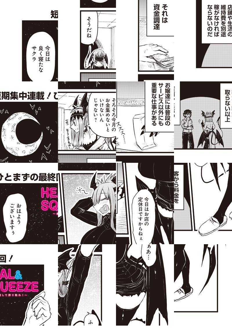妖しいお姉さんたちが誘う極上リラクゼージョンスパラウンジ「HEAL&SQUEEZE」。 至れり尽くせりの癒し体験のお代に彼女たちが要求するのは…!? 「息子がかわいくて仕方がない魔族の母親」作者の新作短期集中連載!