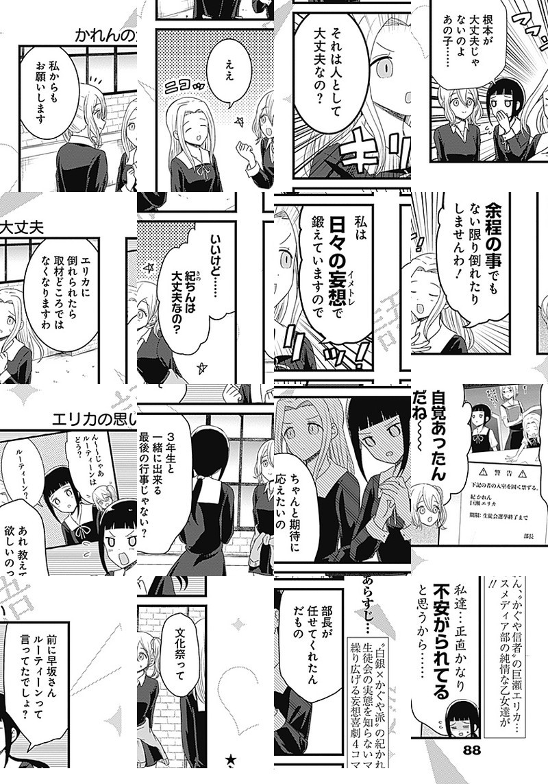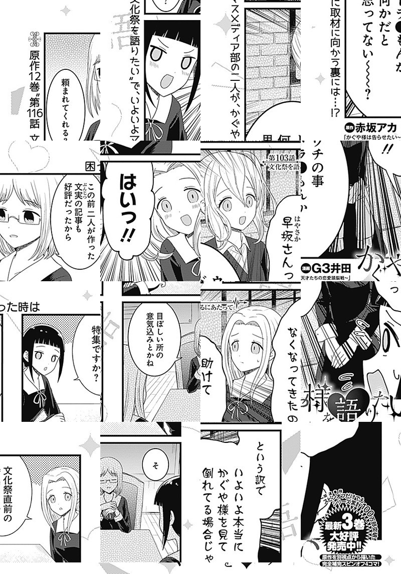 『かぐや様は告らせたい〜天才たちの恋愛頭脳戦〜』TVアニメ化記念、週刊ヤングジャンプ本誌でもスピンオフ作品が連載開始しました。 生徒会の実態を知らない、マスメディア部のメンバーが繰り広げる妄想喜劇4コマ!!