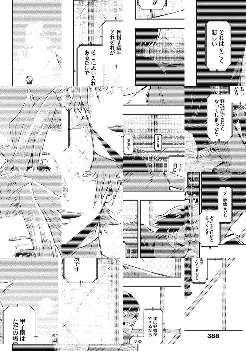 汗を流す姿を「無駄」と切り捨てる高校生・守崎夜畔(モリサキヨハン)。 ある日駅でキーホルダーを拾ったのをキッカケに薙居尾朗(カルイビロー)に「魔物退治」に誘われ…。 野球界に新たな価値観を提示する高校野球譚、ここに始動!