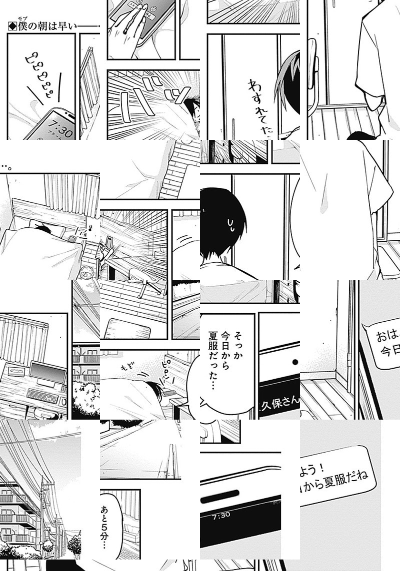 高校1年生・白石純太は、隣に居ても気づかれない、集合写真に写っているのに欠席だと思われて顔写真を合成される、そんな存在感ゼロの"モブ"男子。 ところがクラスメートの"ヒロイン級"美少女・久保さんだけは彼を目ざとく見つけて、今日もちょっかいをかけにやってくる。 誰だって、誰かの特別になれる。でも、その感情に"恋"と名がつくには、まだ二人は少しだけ幼い。 "ラブコメディ"の2歩手前。ヒロイン女子×モブ男子の思春期スイートコメディ。