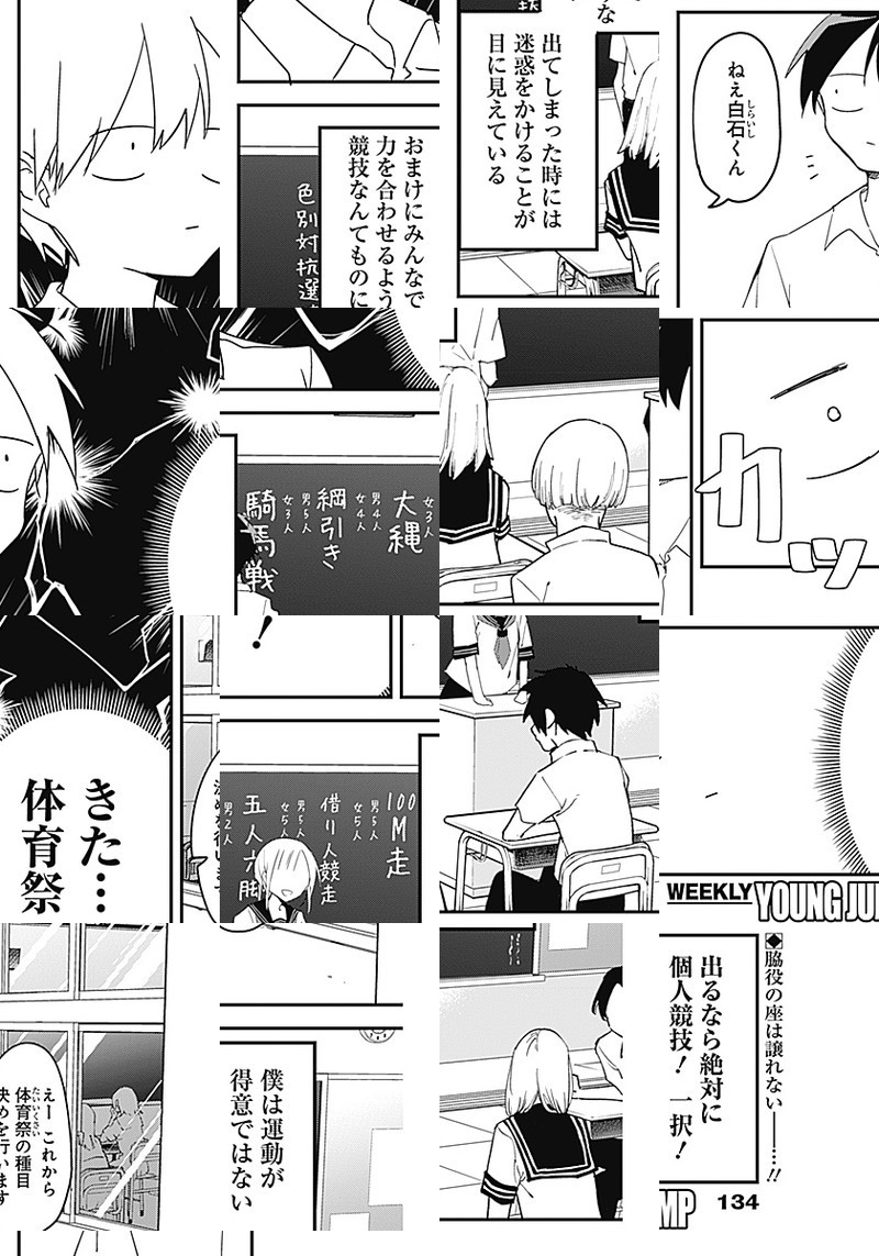高校1年生・白石純太は、隣に居ても気づかれない、集合写真に写っているのに欠席だと思われて顔写真を合成される、そんな存在感ゼロの"モブ"男子。 ところがクラスメートの"ヒロイン級"美少女・久保さんだけは彼を目ざとく見つけて、今日もちょっかいをかけにやってくる。 誰だって、誰かの特別になれる。でも、その感情に"恋"と名がつくには、まだ二人は少しだけ幼い。 "ラブコメディ"の2歩手前。ヒロイン女子×モブ男子の思春期スイートコメディ。