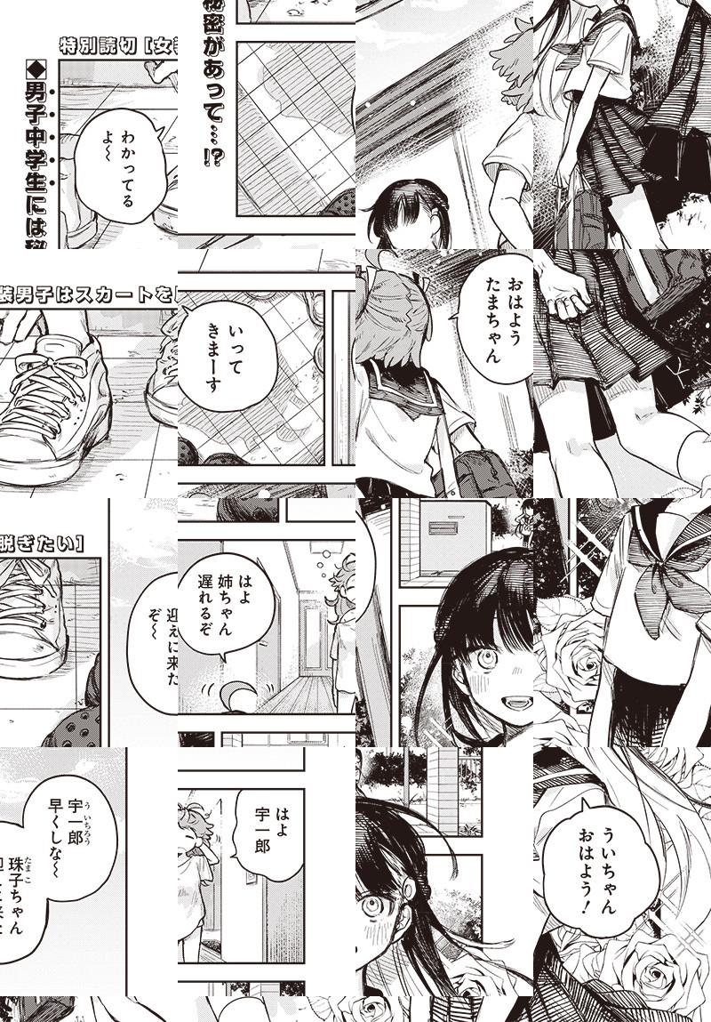 平凡な男子中学生・宇一郎には、幼馴染の女の子・たまちゃんに言えない秘密があった。 それは男性恐怖症である彼女のために、「女の子を演じている」ということ。 女装を続ける年頃男子のドキドキ苦悩コメディ30p!!