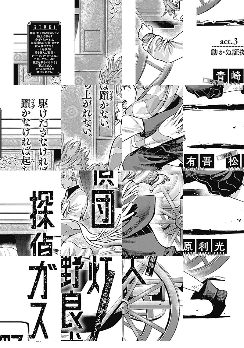 舞台は19世紀末ロンドン。 浮浪児の少年・リューイは、ある殺人事件をきっかけに、開業したばかりの諮問探偵・シャーロック・ホームズと出会う。 上流階級の事件以外には目を向けないホームズに憎しみを抱きながらも、リューイは浮浪児たちを守れる能力を得るため ホームズの「犬」となり働くことを決意するーー。 青崎有吾×松原利光の豪華タッグが贈る、少年たちの地下街ミステリー叙事詩!