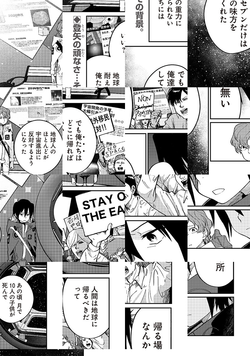 舞台は、インターネットも、コンビニもある「2045年の宇宙」。日本の商業ステーション「あんしん」で少年少女たちは大きな災害に見舞われる。 大人とはぐれ、ネットや酸素供給が途絶した「あんしん」から、自力で脱出を目指す子供たち。ときに仲間の、ときにAIの力を借り、生きるための行動を採る彼らは、史上最高知能AIが語った恐るべき予言の「真意」にたどり着く。絶対絶命の状況下で、子どもたちは何に触れ、何に悩み、何を選択するのか--。