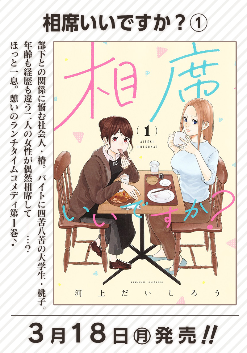 部下との関係に悩む社会人・椿。 バイトに四苦八苦の大学生・桃子。 年齢も経歴も違う二人が偶然相席して──…? ほっと一息。憩いのランチタイムコメディ♪