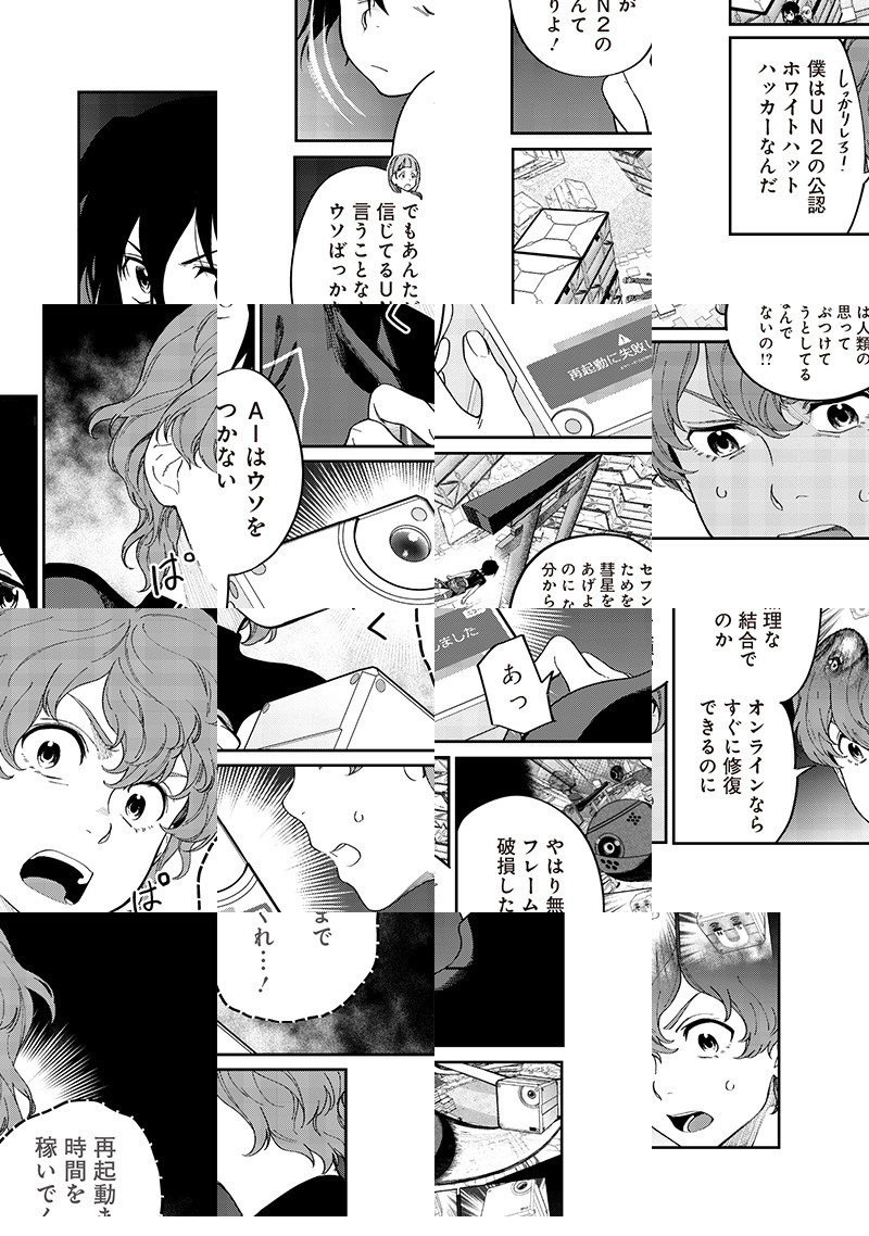 舞台は、インターネットも、コンビニもある「2045年の宇宙」。日本の商業ステーション「あんしん」で少年少女たちは大きな災害に見舞われる。 大人とはぐれ、ネットや酸素供給が途絶した「あんしん」から、自力で脱出を目指す子供たち。ときに仲間の、ときにAIの力を借り、生きるための行動を採る彼らは、史上最高知能AIが語った恐るべき予言の「真意」にたどり着く。絶対絶命の状況下で、子どもたちは何に触れ、何に悩み、何を選択するのか--。