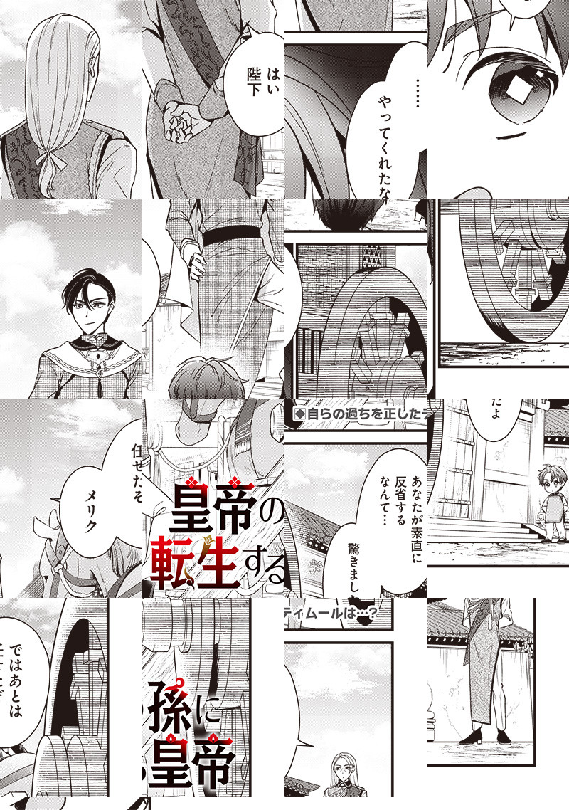 奴隷から成り上がり、一代で帝国を築き上げたティムール。 しかし、120人いる孫は全員無能なようで……このままでは帝国が滅びてしまう! ティムールは皇帝である自分の孫に転生することを思いつき…!? 成り上がりの皇帝が自分の孫に生まれ変わる! 皇族転生無双ストーリー開幕!!