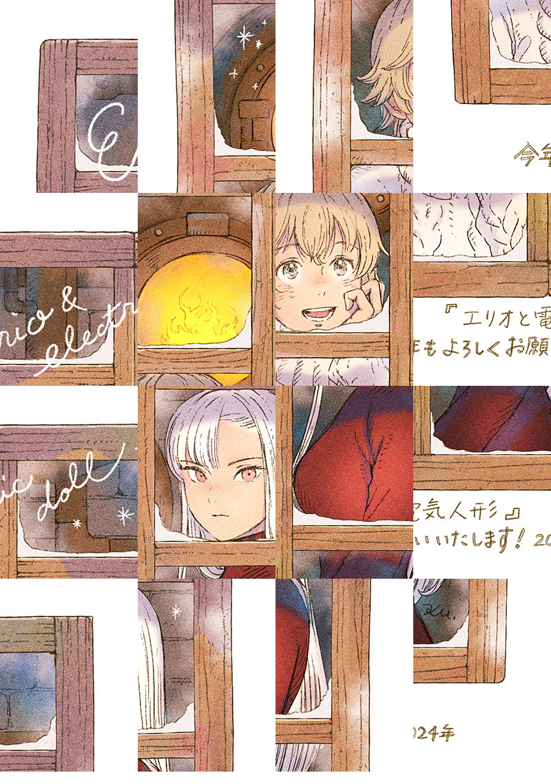 電気人形のアンジュと電気人形に育てられた人間のエリオ。自分以外の人間を知らないエリオに外の世界を見せる為、2人は旅に出る――。 未来なのに懐かしく、機械なのに温かい。近未来でスチームパンクな冒険が始まる!