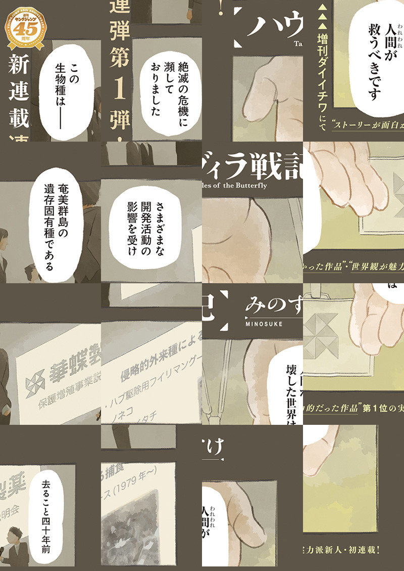 奄美群島にて発見された小さな人型の生き物・ハヴィラ。 絶滅を防ぐために人間によって何世代にも渡り、交配するつがいを決められている。 ハヴィラの青年・忍野はつがいであるマイに思いを寄せるが…!? 人間から自由を勝ち取るために立ち上がる、戦うハヴィラの物語‼