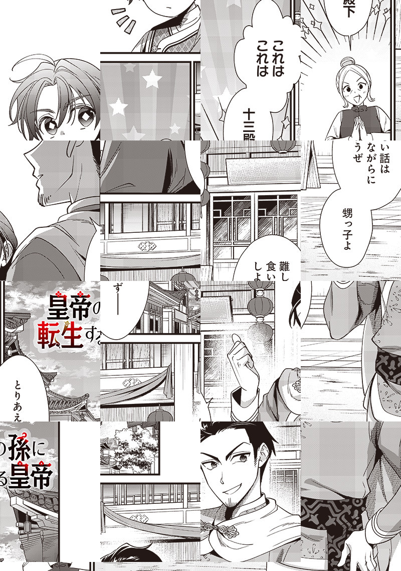 奴隷から成り上がり、一代で帝国を築き上げたティムール。 しかし、120人いる孫は全員無能なようで……このままでは帝国が滅びてしまう! ティムールは皇帝である自分の孫に転生することを思いつき…!? 成り上がりの皇帝が自分の孫に生まれ変わる! 皇族転生無双ストーリー開幕!!