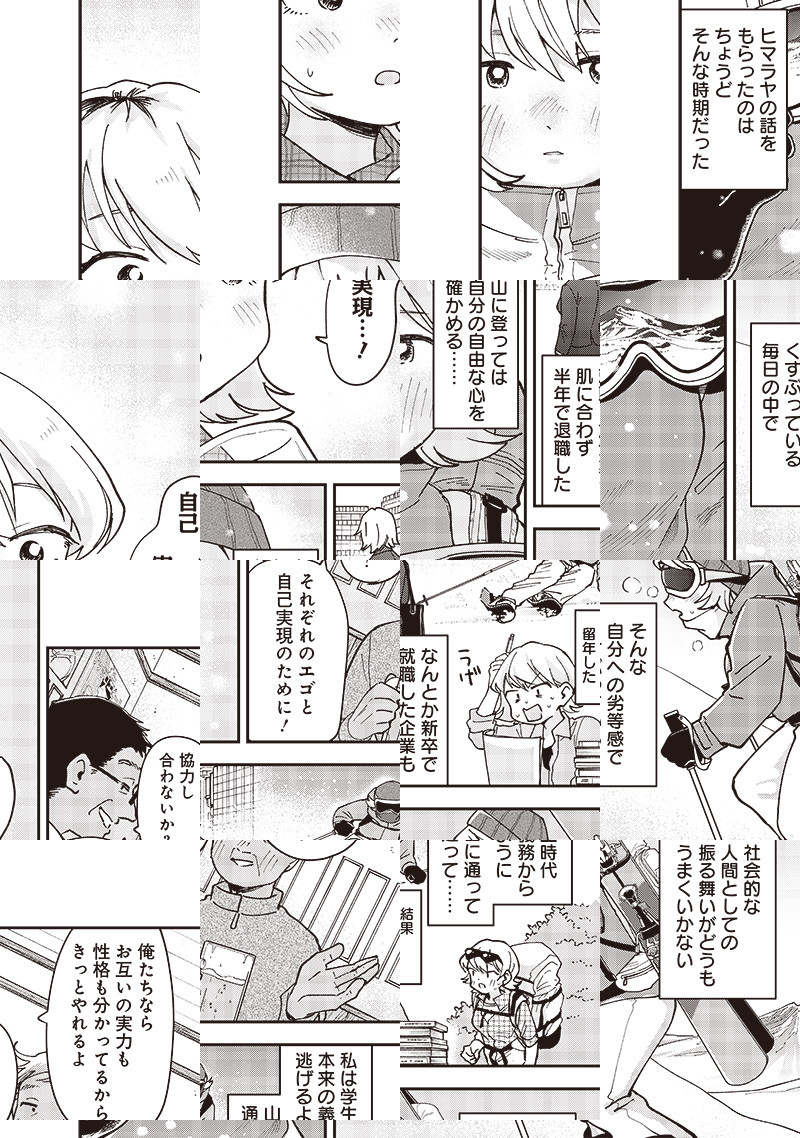 仲のいい友達ができたことのない主人公のつばめは高校では友達を作ろうと意気込むも上手くいかず…。 そんな失意の中で出会った山岳部に勧誘され、いきなり登山に参加することになり――。 北の大地が舞台の山岳ガールズライフコメディ!