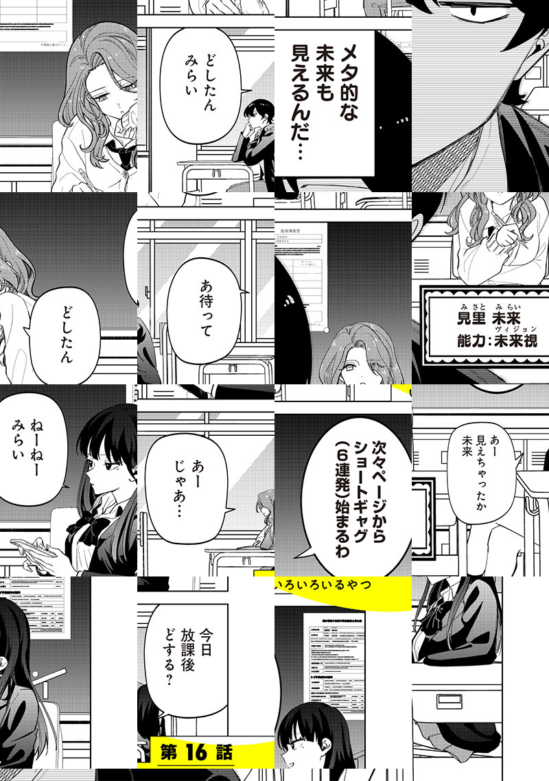 青春=友情、努力、未来予知!? 最強無敵の異能力ギャルが送る、ごくごく普通の超常的な日常。 累計再生数1.6億回!本作の元となったYoutubeチャンネル「私立パラの丸高校」では、みらい& へー子の最強異能力ギャルズの他、光やクラスメイト達の声優ボイス付き動画がたくさん見れるので、ぜひチェックしてみてください!! ▶︎▶︎▶︎ https://www.youtube.com/@parako/featured