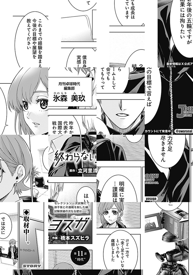6歳までに始めていることが一流の卓球選手になる最低条件と言われている現代において、元日本代表の武嶋はその“常識”を打ち壊せる人物を探していた。そんなとき人との繋がりを求め卓球を始めた深堂縁と出会い、その不純物のないまっすぐな感情に可能性を見出していき――。元日本代表と孤独な少年が紡ぎだす、スポーツ界の“常識”に楔を打ち込むドラマチック卓球史。
